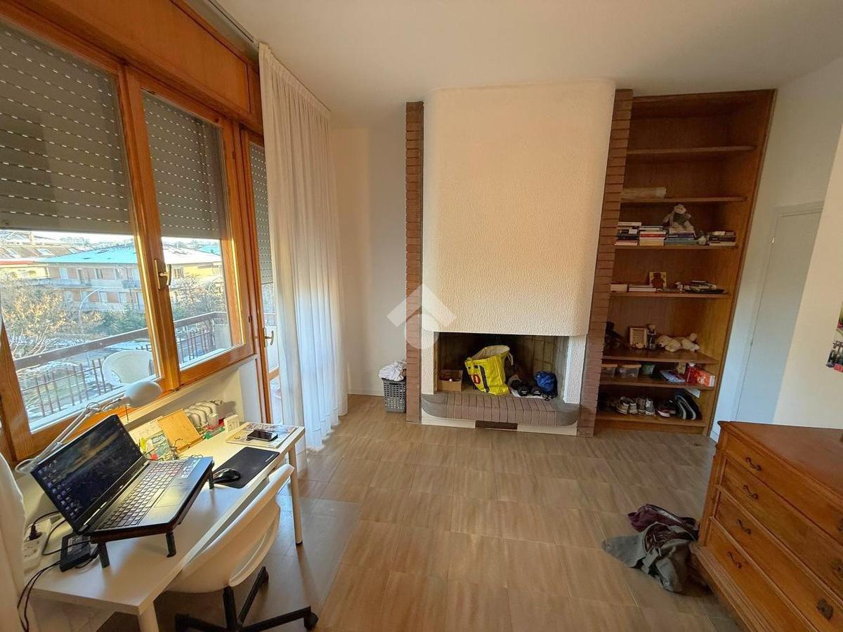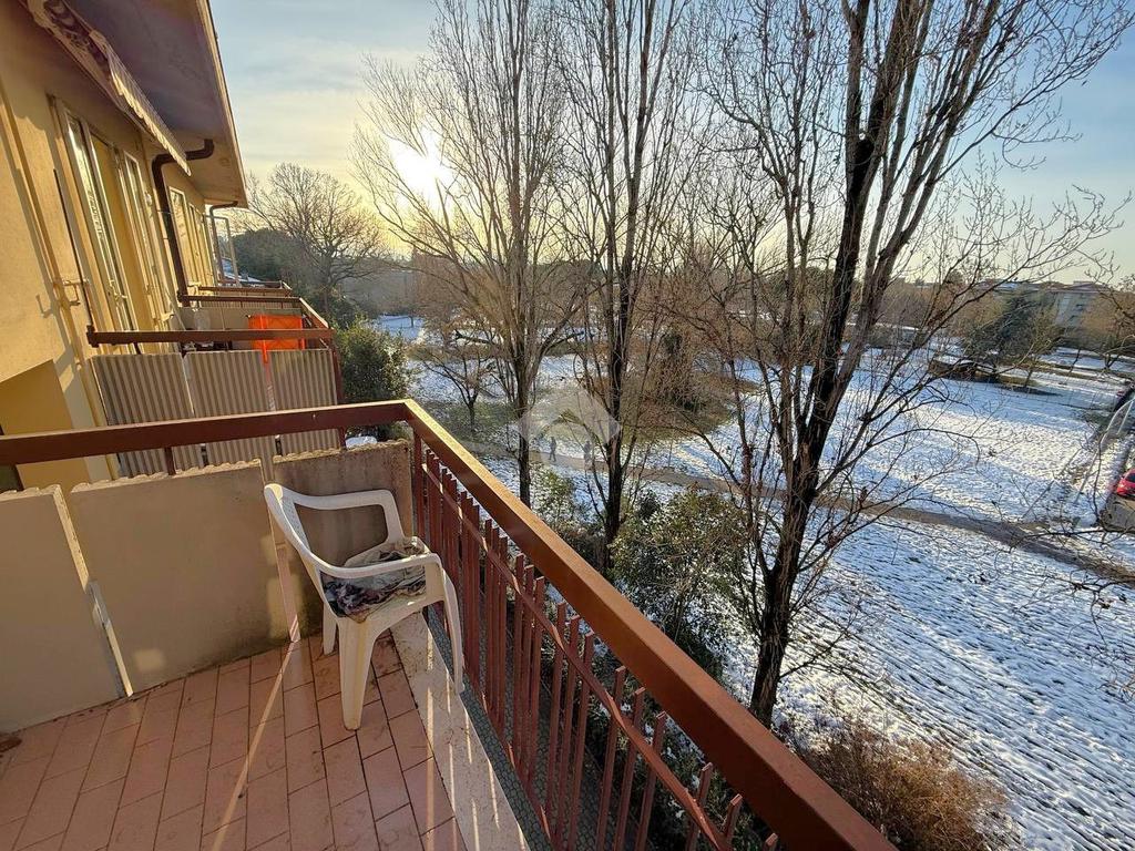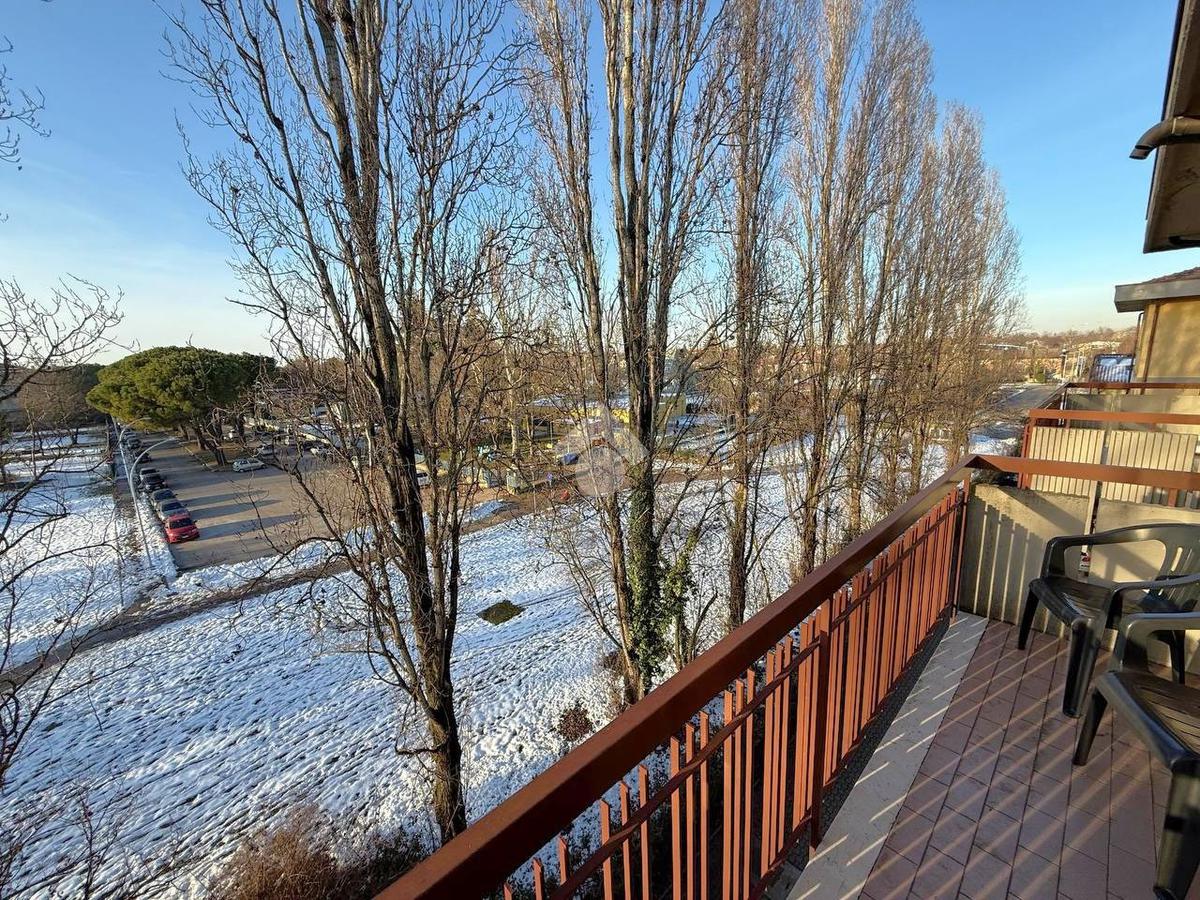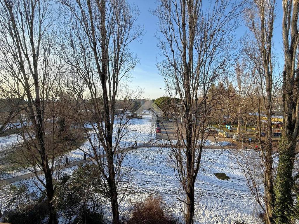 L’appartamento affacciato sul Parco delle Stagioni è composto da ingresso, soggiorno, cucina abitabile, tre camere da letto (due camere matrimoniali e una singola), due bagni finestrati, ripostiglio e tre balconi.